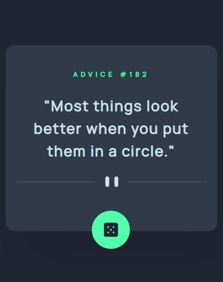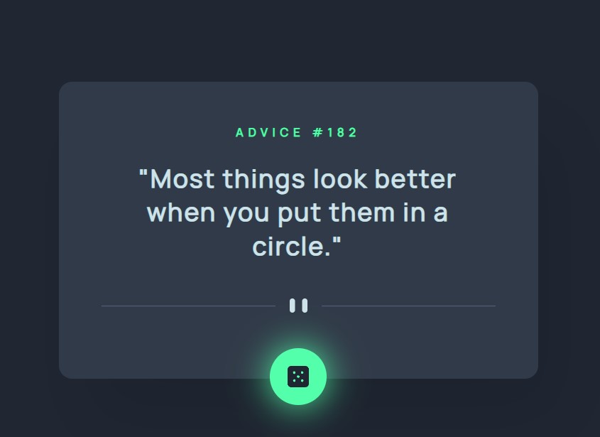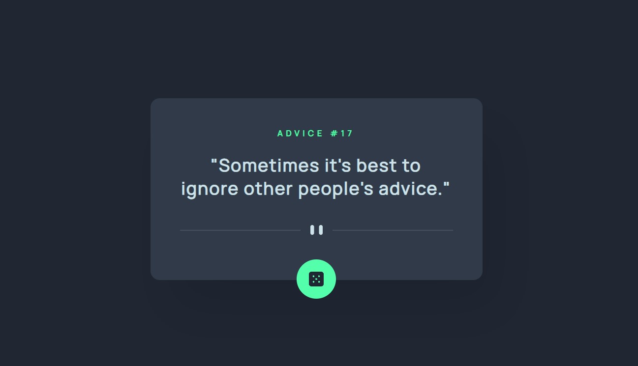 This is a solution to the Advice generator app challenge on Frontend Mentor. Frontend Mentor challenges help you improve your coding skills by building realistic projects.