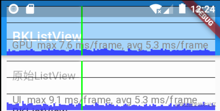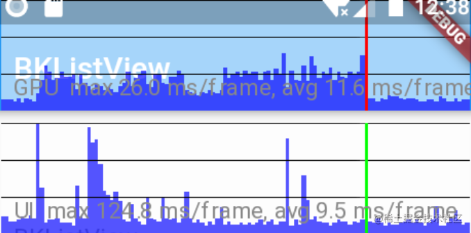 如图,PerformanceOverLay 上分别为我们展示了构建(UI)耗时和渲染(GPU)耗时。