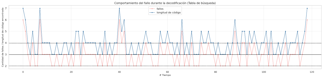 Failure behavior during decoding sorted by lenght codes