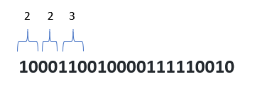 The central idea of this approach is to make cuts on the compressed bit string of size m, where m is an element that belongs to the set Lm, and Lm is the set of all the lengths found, for the previous case the set Lm is { 2, 3}, and its cardinality is 2, we will call the cardinality | Lm |, therefore, in the worst case, decoding each symbol involves trying | Lm | - 1 times, in order to achieve the best performance of this technique, the code lengths must be ordered from smallest to largest, because shorter length codes have a higher probability of occurrence, ascending order will definitely reduce the number of attempts response time in decompression.