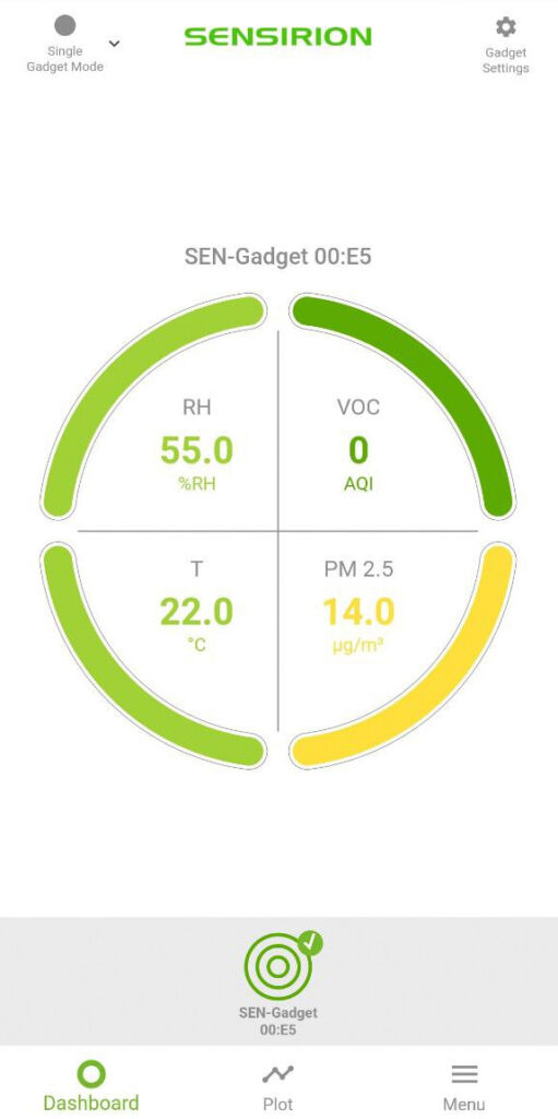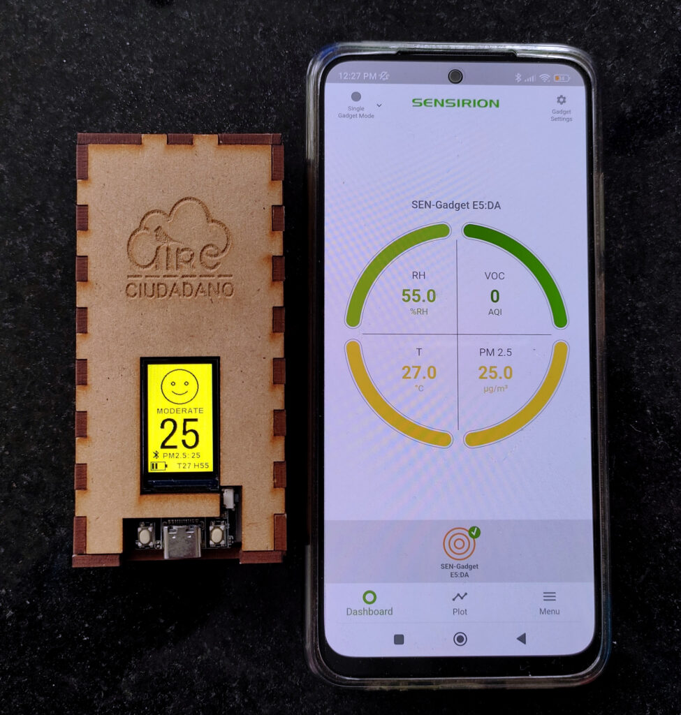 Baja la App Sensirion MyAmbience para conectarte al medidor AireCiudadano y monitorear, dibujar, guardar y exportar tus datos: