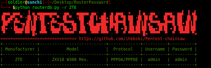 Accessing devices using the default credentials is a daily habit for pentester .Routerdb is a python script based on routerpassword website that gather the default username/password for different routers products . You don't need to leave your terminal anymore .