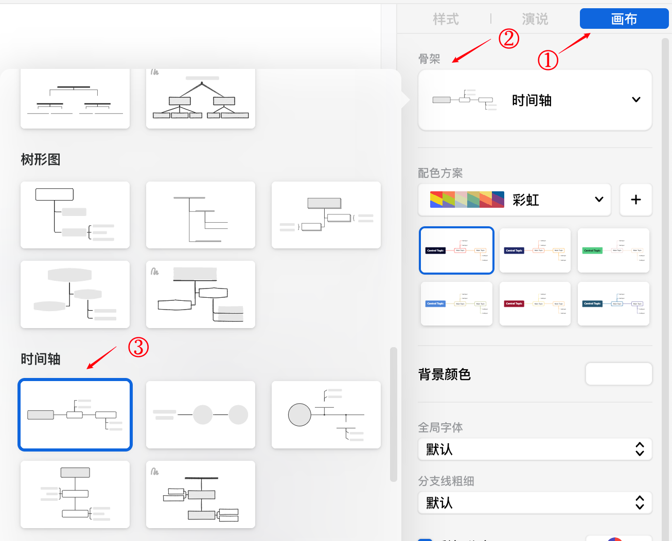 梳理得到的内容也是 markdown 格式的文字,同样用上面的方法,导入到 xmind,图表切成时间线图即可。