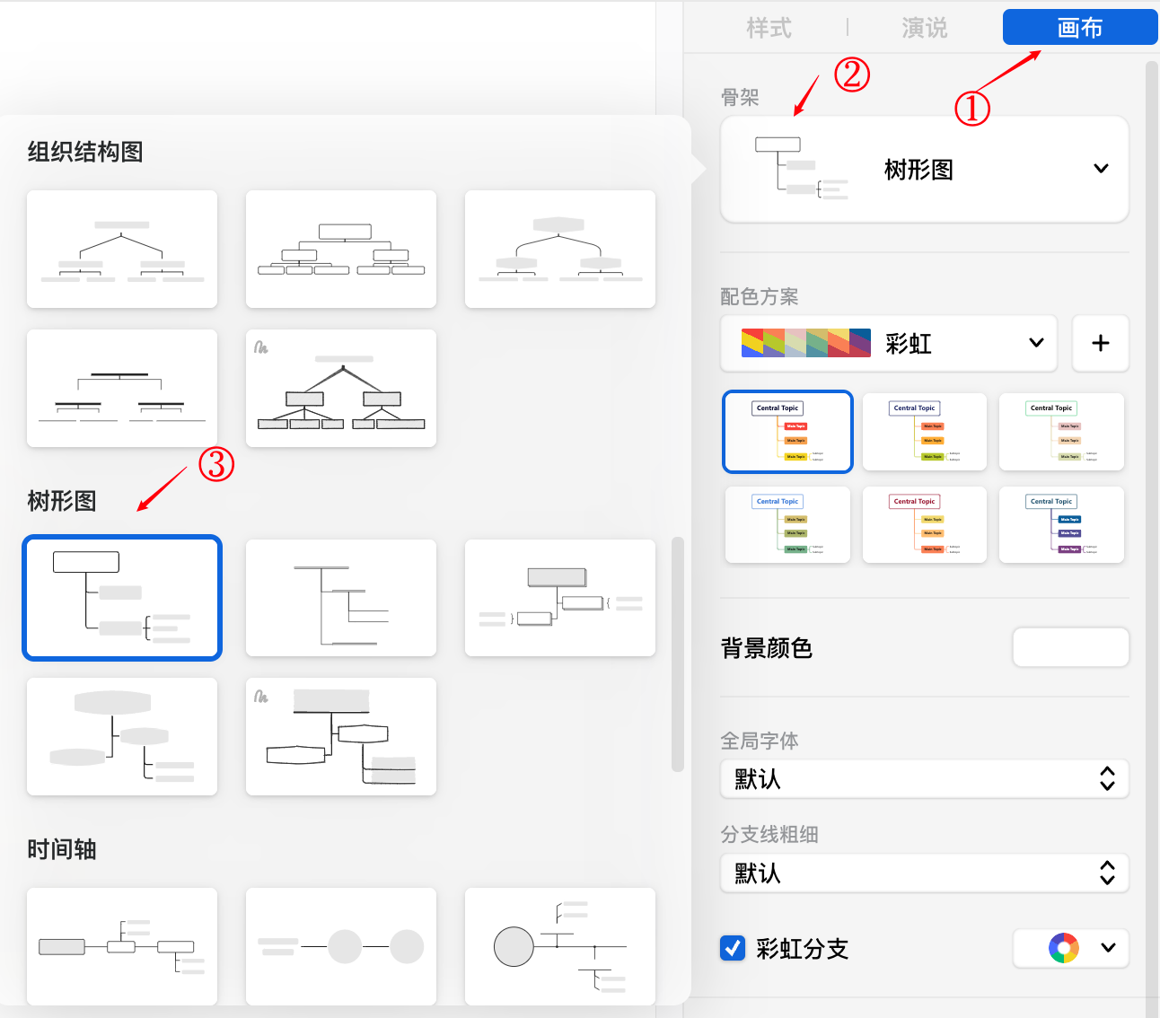 和上面同样的方法,画布骨架调整成树形图,几分钟内就能让复杂的人物关系变得清晰明了。