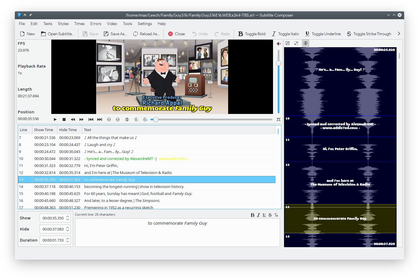 - Preview/editing of subtitles on audio waveform w/ audio stream selection