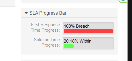 a) When ticket is within SLA / Escalation, green bar (applicable to open and closed ticket) b) When ticket is within SLA / Escalation and reached 'notify before' time (if configured), yellow bar (applicable to open ticket only) c) When ticket is overdue SLA / Escalation , red bar (applicable to open and closed ticket)