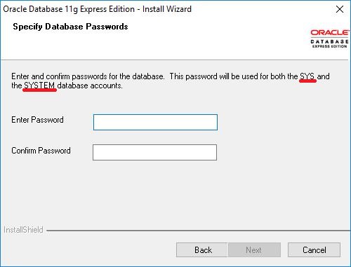 La seconda è invece la password dell'utente di sistema (chiamato appunto SYSTEM a.k.a. SYS). ATTENZIONE! E' importante non mettere una password casuale! Servirà più avanti!