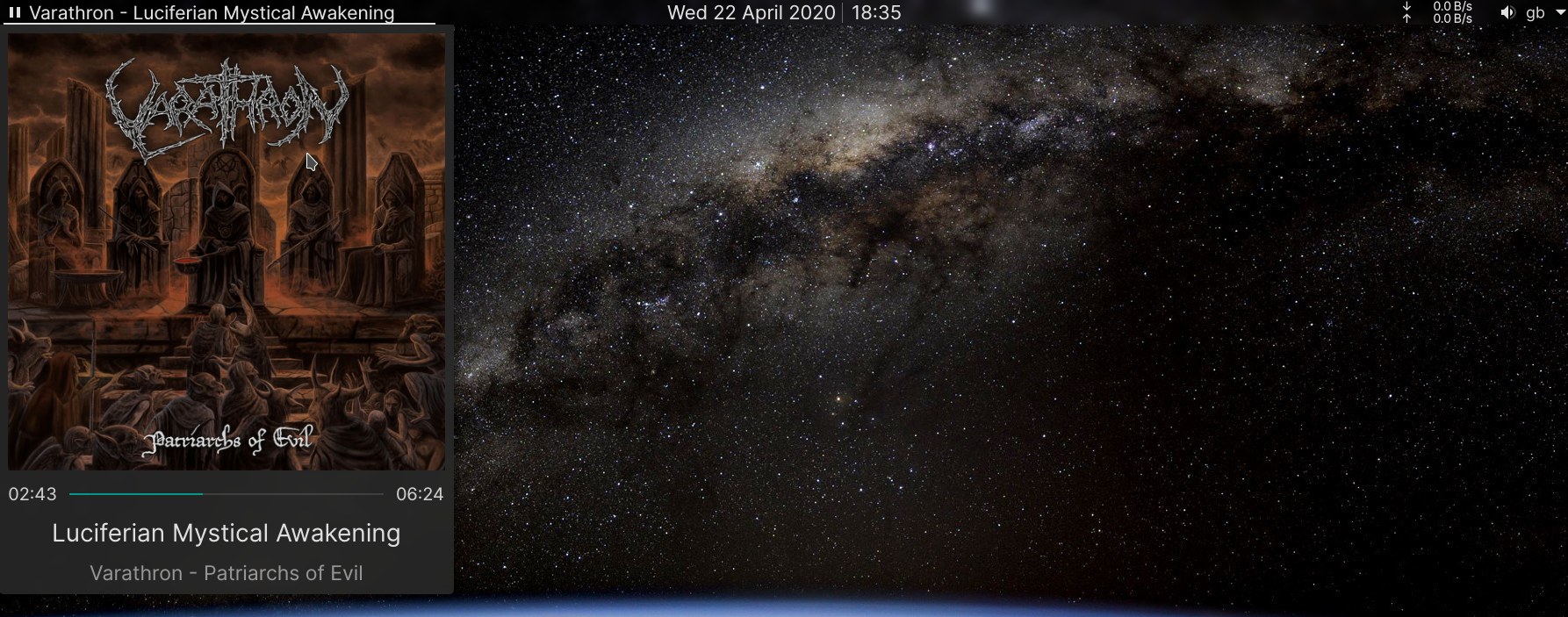 Note: The plasmoid relies on the mpris2 protocol to view and control the media. If you can't see some stuff or you can't control some aspects it's possible that your media player doesn't provide those to the mpris2 protocol and there's nothing MediaBar can do about it.