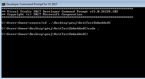git clone https://github.com/ProgmaticProgrammer/UnitTestEmbeddedC.git --recursive --progress -v- Open a Developer Command Prompt (VS 2017)