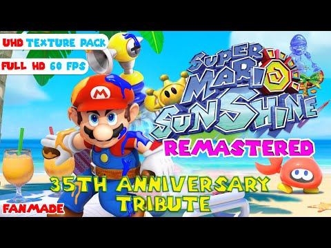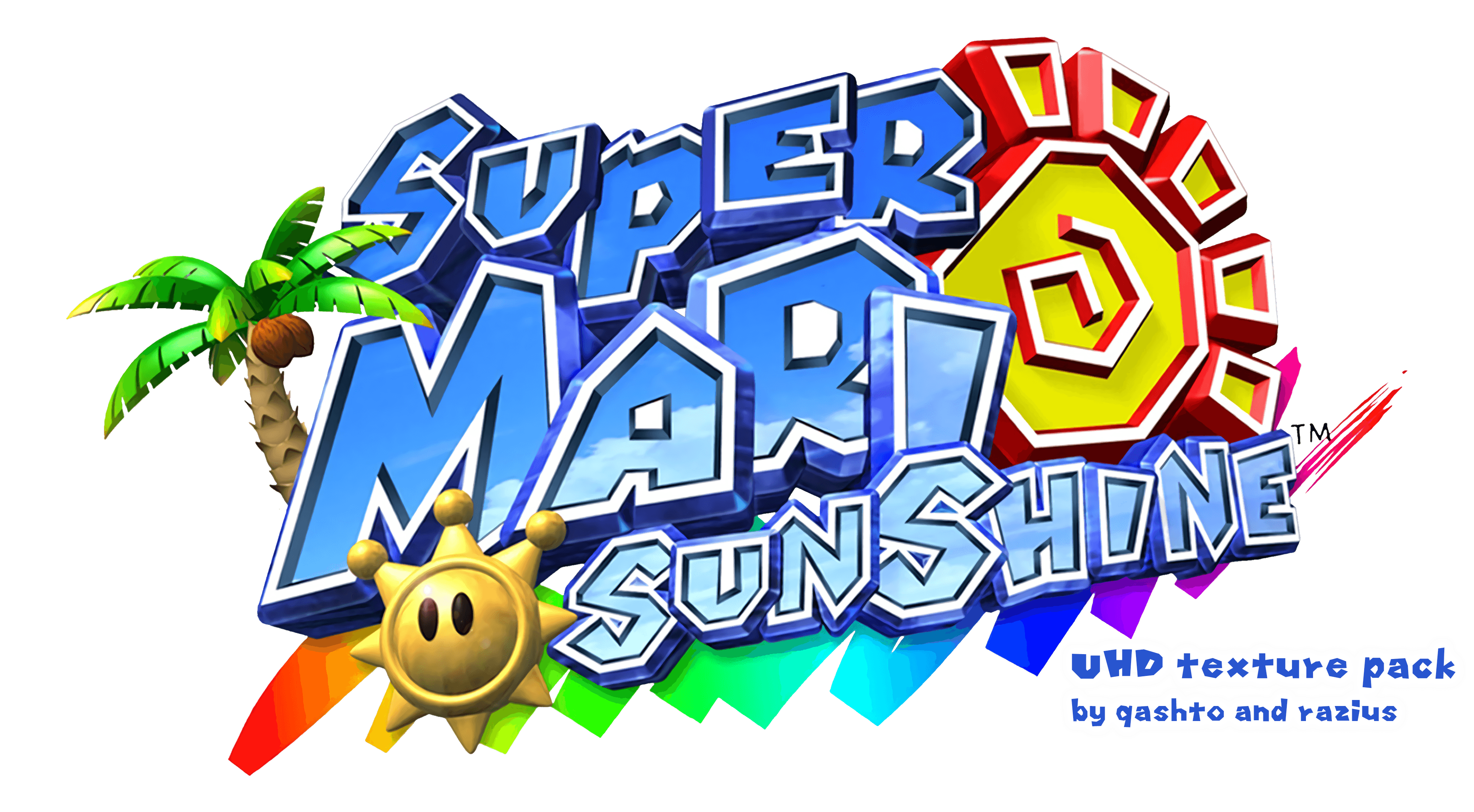 This update adds M graffiti warp textures by cheatfreak47, a font texture fix by Scall, a new North American title texture by qashto (me) that was upscaled from the SMS title in Super Mario 3D All Stars, and an alternate North American title texture which is an original vector art style rendering made by twitter user @WhaddupNico.