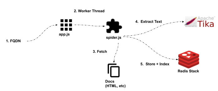 API server implementation of a web crawler. Apache Tika is leveraged to extract text from crawled docs (html, pdf, etc). The extracted text is then stored in Redis as JSON and indexed via RediSearch.