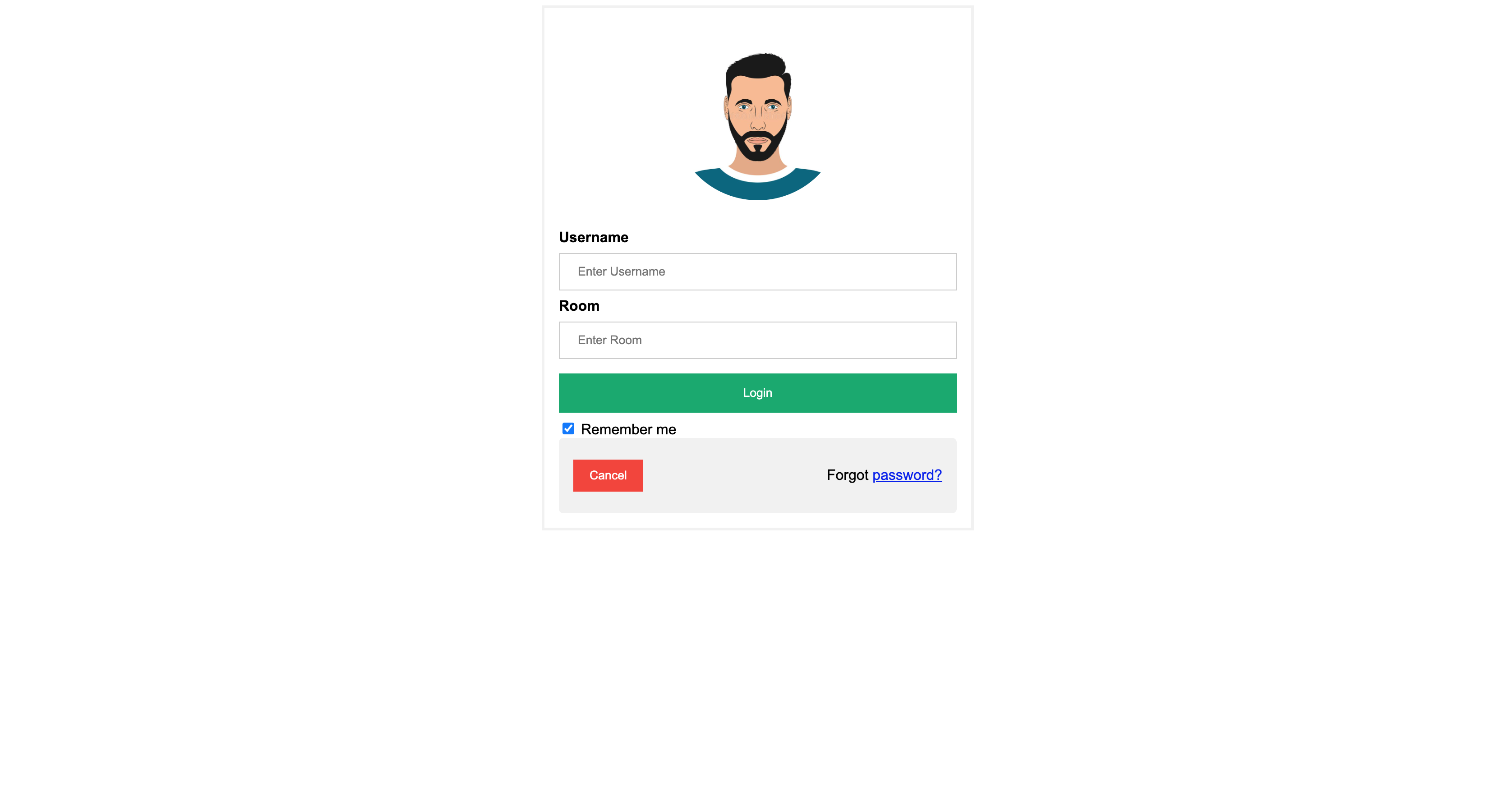 chat app login in page with room selection.